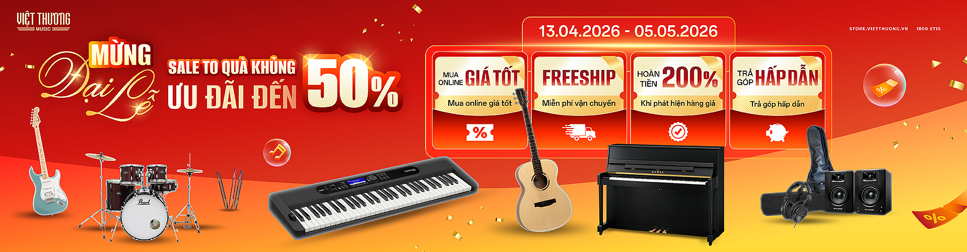 Mùa hè là thời điểm tuyệt vời để nuôi dưỡng đam mê và phát triển tài năng âm nhạc. Nhằm đồng hành cùng các bạn học sinh – sinh viên trên hành trình nghệ thuật, Việt Thương Music triển khai chương trình ưu đãi 10% đặc biệt cho các bạn học sinh, sinh v