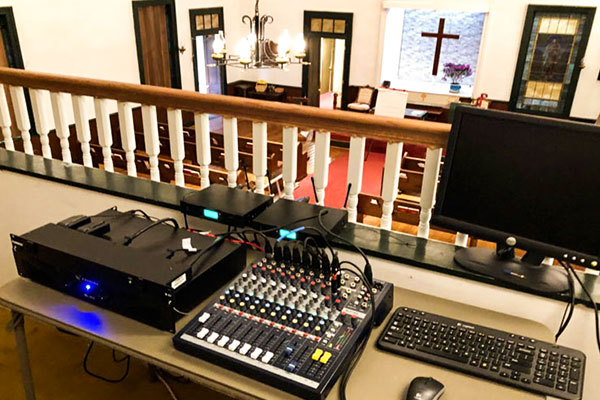 Kỹ thuật trộn âm thanh phụ thuộc hầu hết vào bàn trộn mixer, nhưng nếu chỉ dựa vào mixer để có hệ thống âm thanh nhà thờ hoàn chỉnh thì chưa đủ, cần trang bị thêm revert, delay,… của bộ effect, đặc biệt là vị trí đặt bộ loa, thiết bị micro sao cho không hú mà âm thanh rải đều, vì thánh đường có cấu trúc dội âm nên chỉnh âm thanh nhà thờ không phải là công việc dễ dàng.