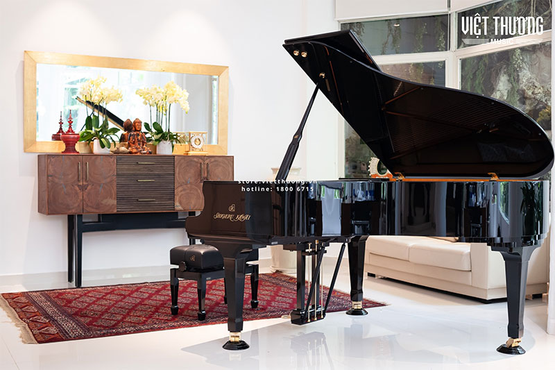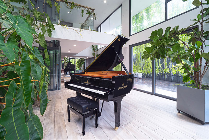 Khi đặt một cây piano grand trong phòng khách, bạn không chỉ tô điểm cho không gian bằng vẻ đẹp hình thể, mà còn truyền tải tinh thần sống sâu sắc, sang trọng và có chiều sâu cảm xúc. Dù được đặt giữa căn biệt thự hiện đại hay một penthouse cổ điển, đàn piano luôn trở thành tâm điểm thị giác và trái tim âm nhạc của cả ngôi nhà.