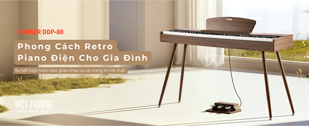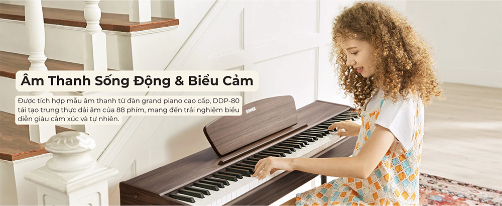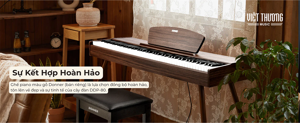Piano điện Donner DDP-80 – thiết kế thời trang, màu sắc thanh lịch, âm thanh chân thực. Lựa chọn lý tưởng cho không gian sống hiện đại.