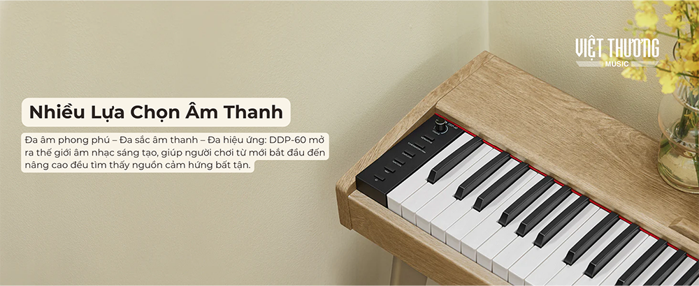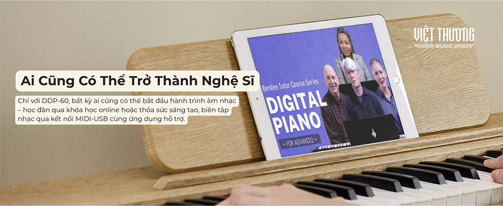 • Thiết kế tối giản: DDP-60 chú trọng sự đơn giản, tinh tế, dễ dàng hòa hợp với không gian sống. Không chỉ là nhạc cụ, mà còn là điểm nhấn nghệ thuật trong ngôi nhà của bạn.