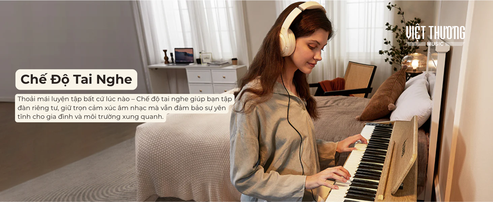 • Thân thiện với giáo viên: Chế độ Dual Mode cho phép 2 người chơi trên cùng một dải phím, kèm theo 2 cổng tai nghe đặt dưới đàn – lý tưởng cho việc giảng dạy hoặc song tấu cùng nhau.
