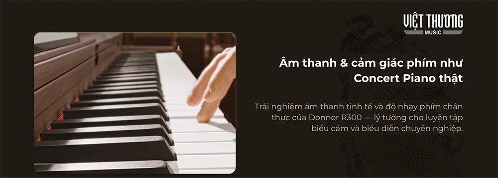 Piano điện Donner OURA™ R300 – thiết kế thời trang, độc đáo, âm thanh sống động. Lựa chọn hoàn hảo cho không gian hiện đại và người yêu nhạc.