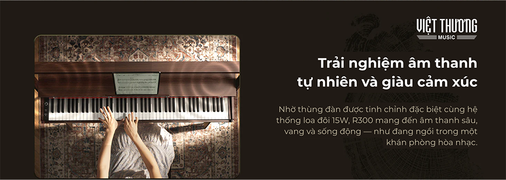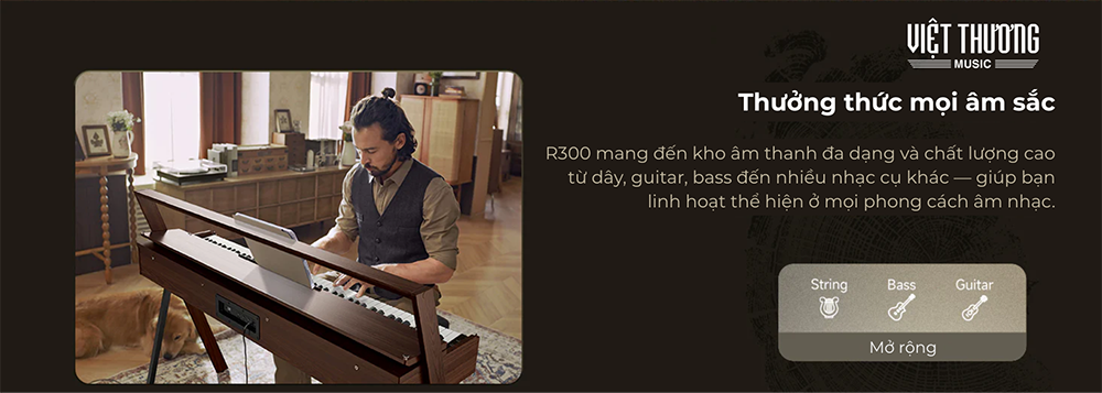 Tích hợp mẫu âm thanh piano acoustic cao cấp cùng nhiều tiếng nhạc cụ khác như guitar, bass, organ.