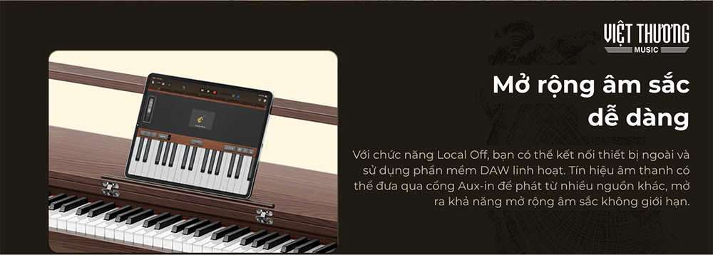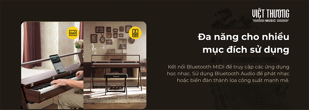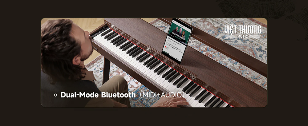 Bluetooth 2 chế độ (MIDI + AUDIO) hỗ trợ học tập, thu âm và biểu diễn dễ dàng.