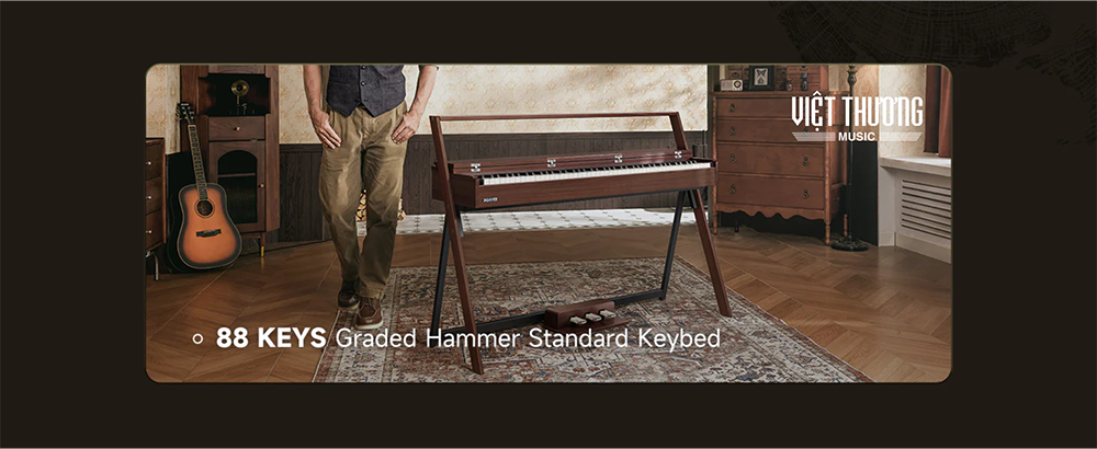 Bàn phím tiêu chuẩn Graded Hammer tái hiện chính xác độ nặng phím và phản hồi như piano cơ.