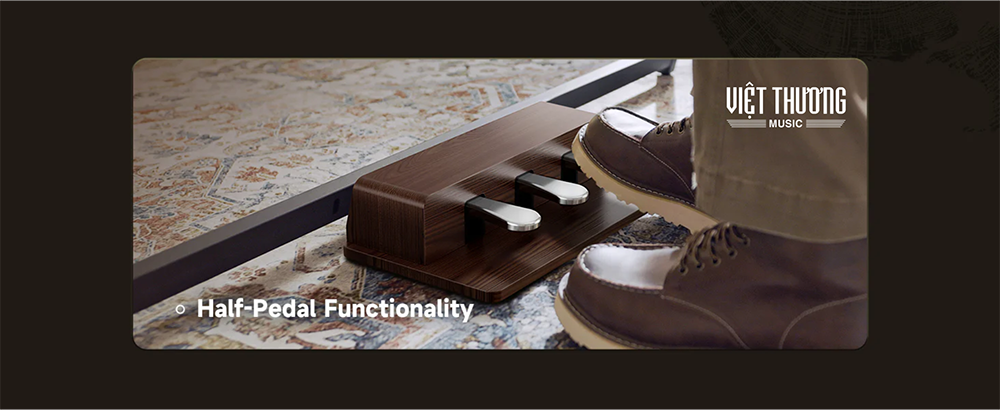 Cả 3 pedal đều hỗ trợ chức năng half-pedal, mang lại khả năng biểu đạt tinh tế.