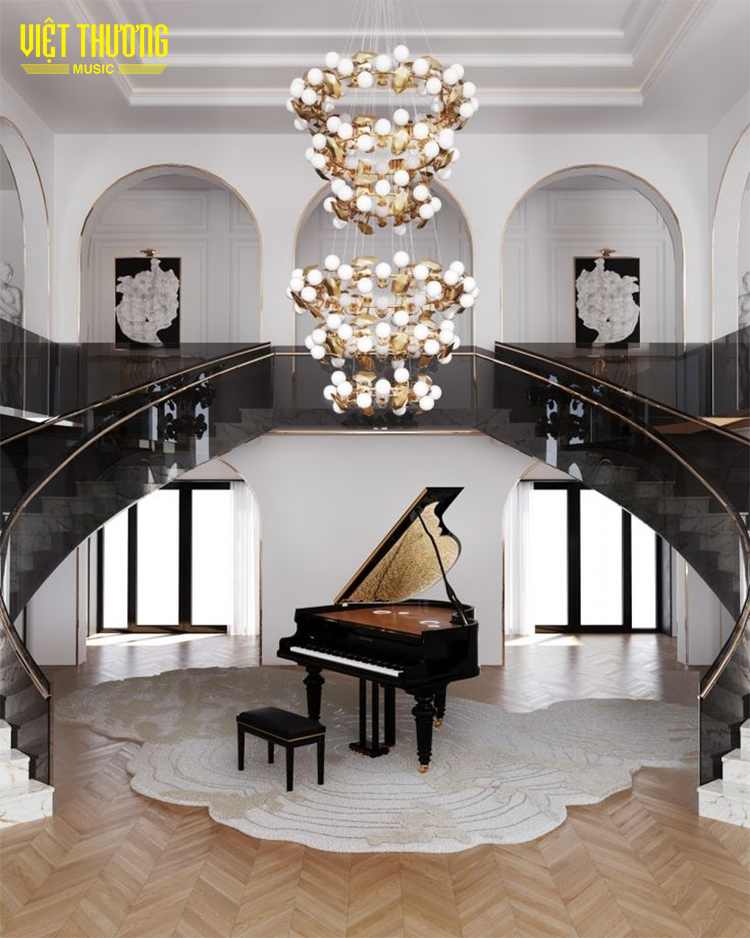Trong các biệt thự, penthouse hay căn hộ cao cấp, piano là lựa chọn hoàn hảo để làm nổi bật phong cách nội thất. Được đặt tại phòng khách rộng lớn với ánh sáng tự nhiên bên cạnh cửa kính hoặc giữa không gian mở kết nối các căn phòng tạo nên bức tranh đầy cuốn hút. Grand piano sang trọng với đường cong mềm mại hay upright piano thanh lịch gọn gàng, mỗi thiết kế đều mang đến giá trị thẩm mỹ riêng biệt.