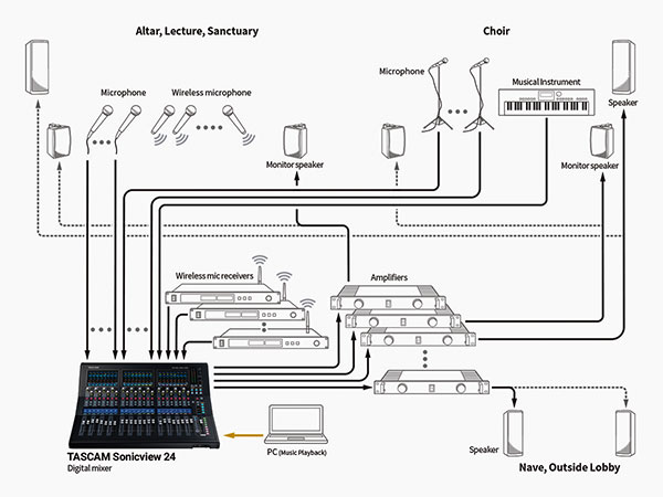 Trước đây, khi sử dụng bộ trộn âm thanh analog, nhà thờ mong muốn có "chất lượng âm thanh cao" và "hoạt động ổn định" trong quá trình nâng cấp thiết bị. Sau khi được nhà phân phối trình diễn, giao diện thân thiện với người dùng và chất lượng âm thanh vượt trội đã trở thành yếu tố quyết định để lựa chọn TASCAM Sonicview 16.